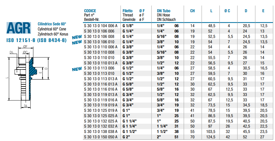 Đầu nối ống mềm AGR - Voss Larga Italy