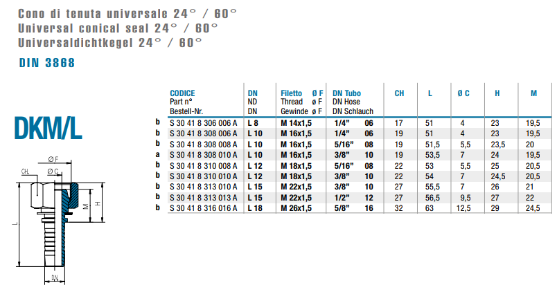 Đầu nối ống mềm 24O DKM/L Voss Italy