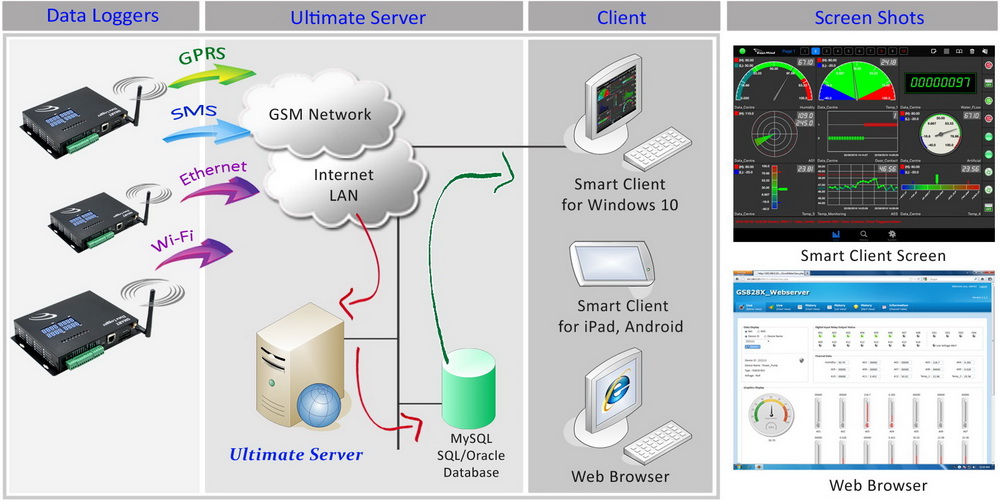 Phầm mềm Smart Client chỉ dùng cho việc quan sát các dữ liệu từ các bộ ghi dữ liệu Data Logger, điều khiển qua mạng nội bộ, mà không có cách nào để điều khiển được các đầu ra của các bộ Data Logger qua mạng Internet.