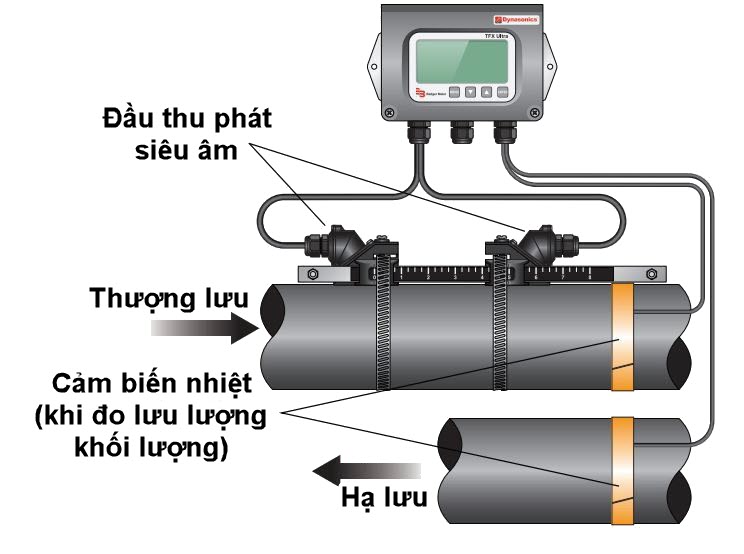 Cảm biến đo lưu lượng siêu âm hoạt động dựa trên hiệu ứng Doppler, khi nguồn phát tín hiệu ra xa và lại gần thì tần số thu được giảm tăng tương ứng, từ có có thể thấy nếu biết tần số của nguồn thu có thể tính ngược ra vận tốc của nguồn phát.